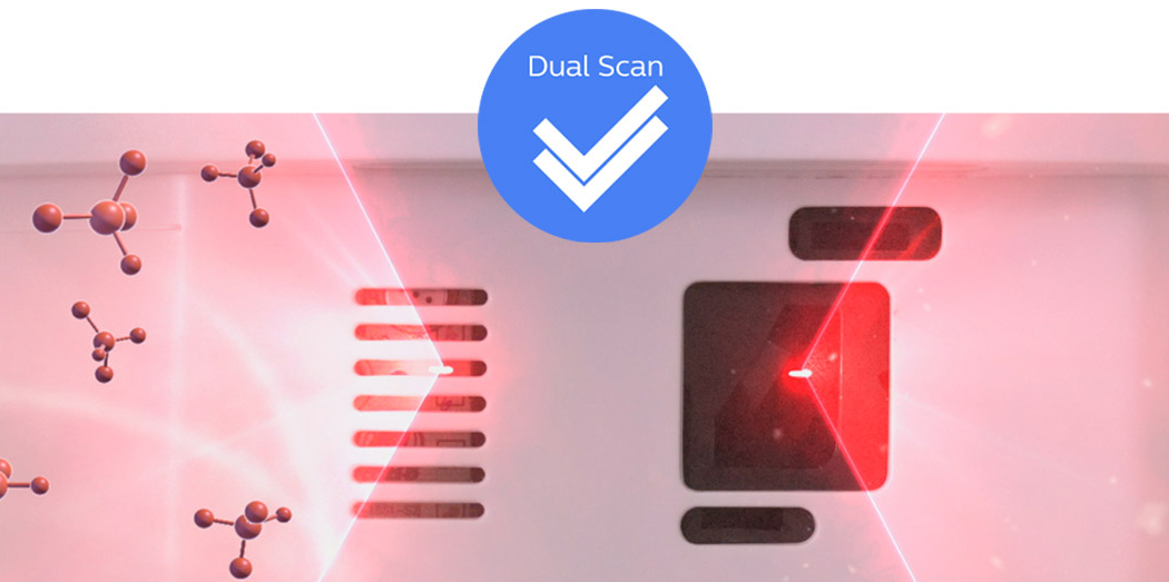 Dual Scan – dva senzory, které nepřetržitě skenují kvalitu vzduchu u vás doma a okamžitě odhalí stupeň znečištění vzduchu díky dvěma citlivým senzorům.